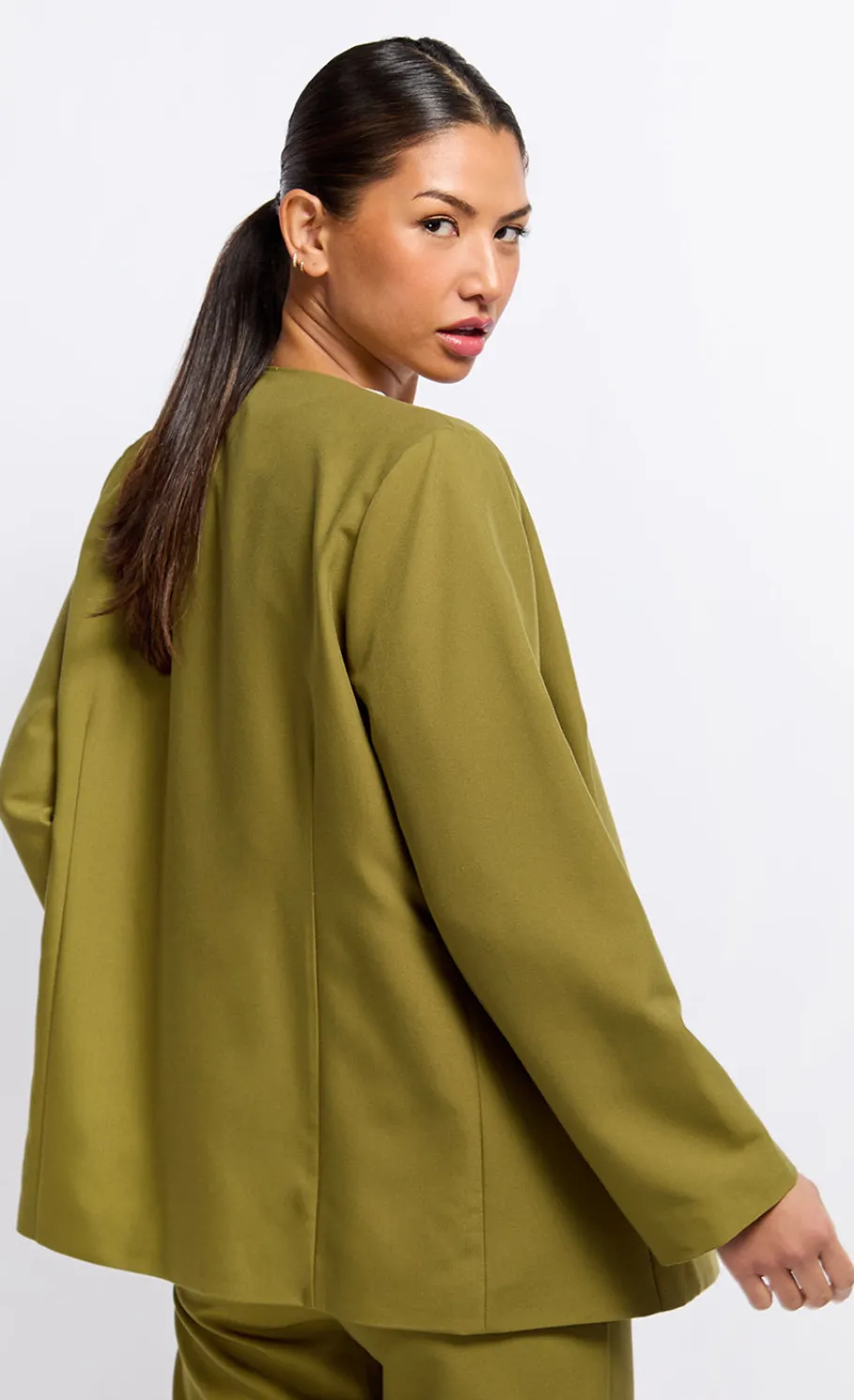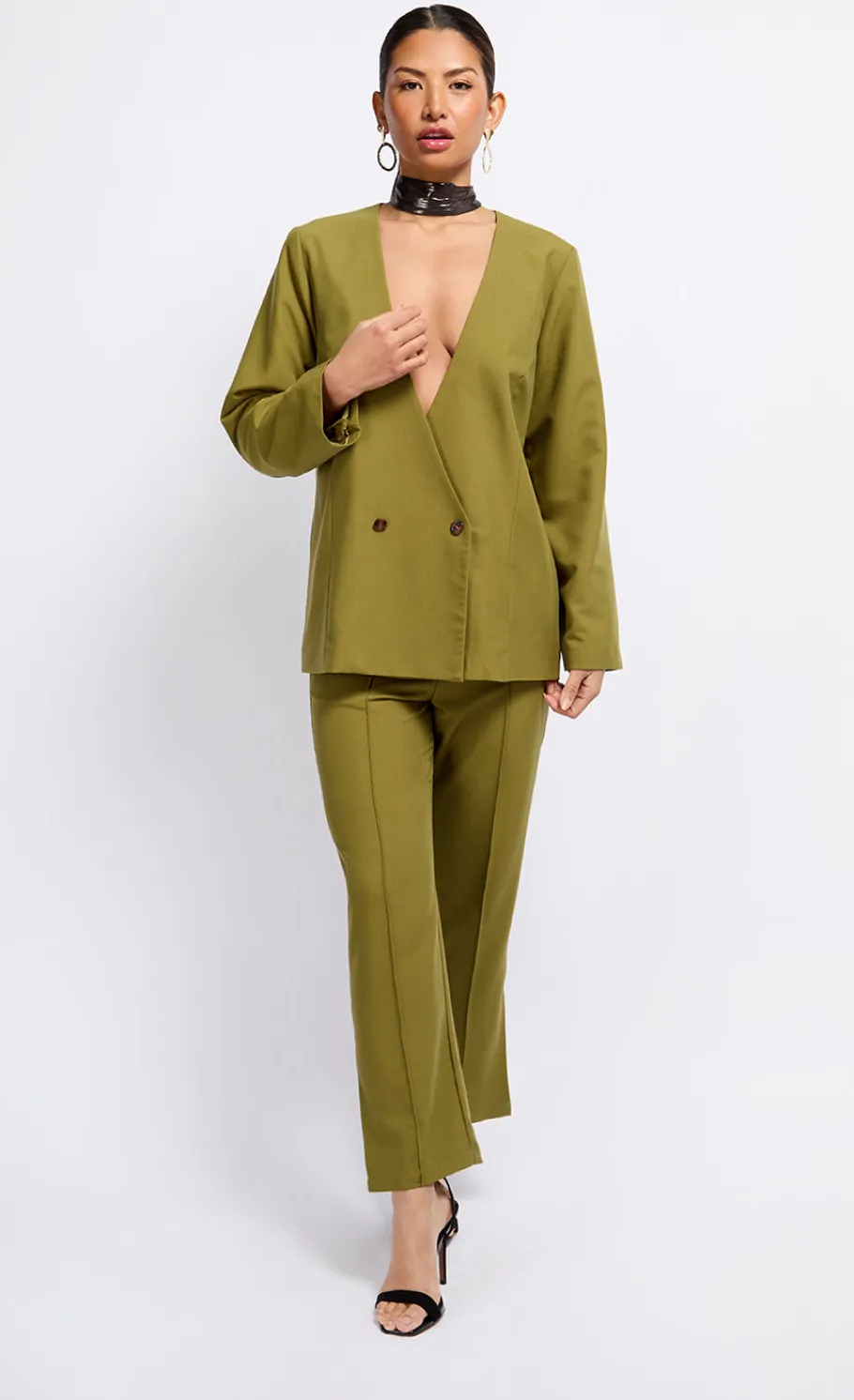 Make a statement this Summer in the khaki blazer! Double breasted with a trend-led plunge deep-v neckline, style with matching trouser co-ord for the ultimate in tailored statement-making or dress down with a t-shirt and jeans on more casual days!