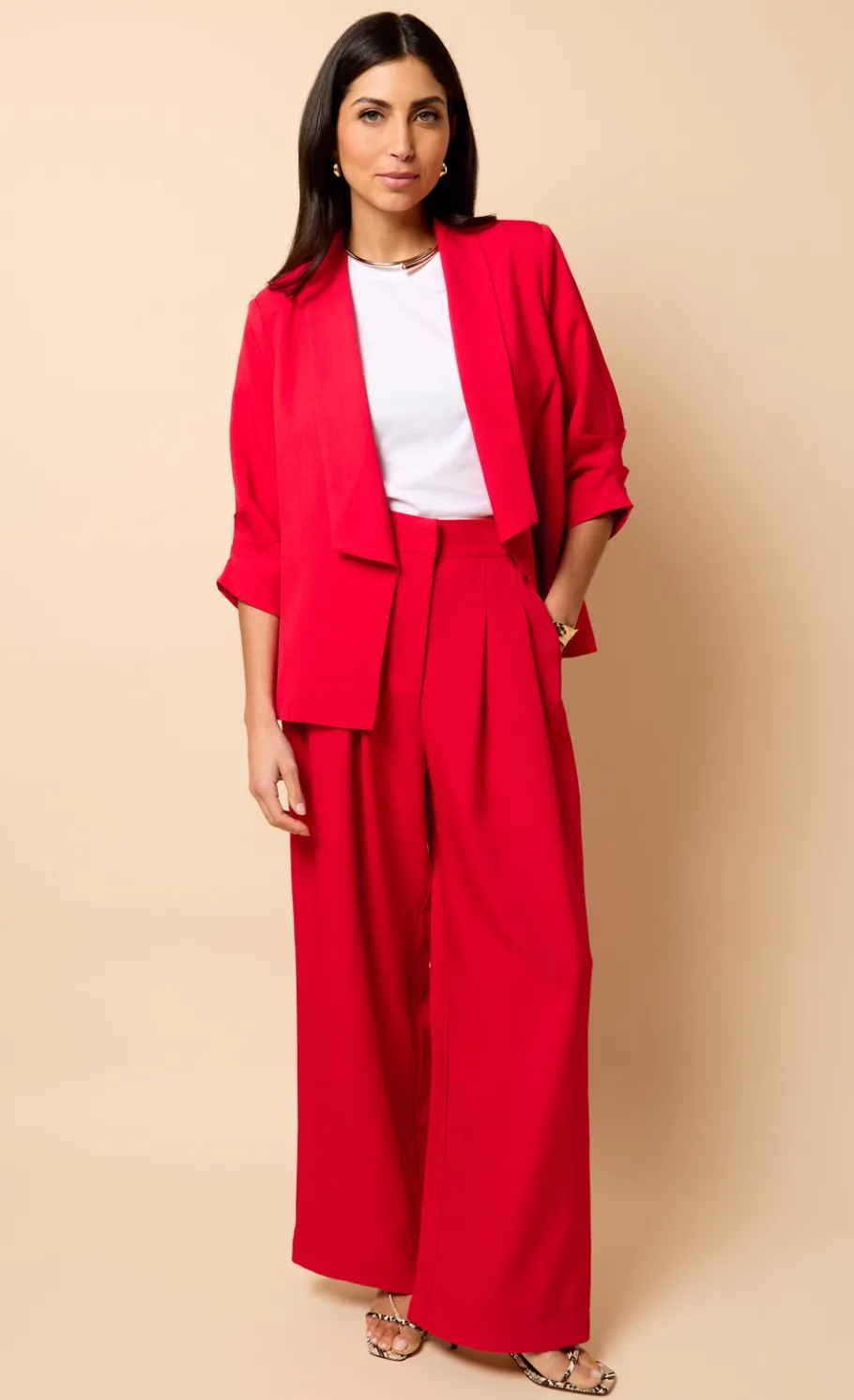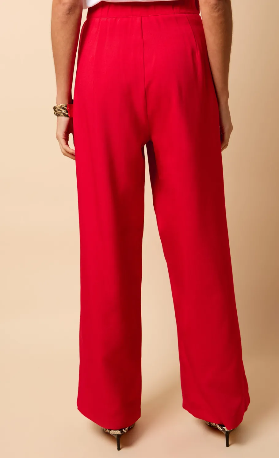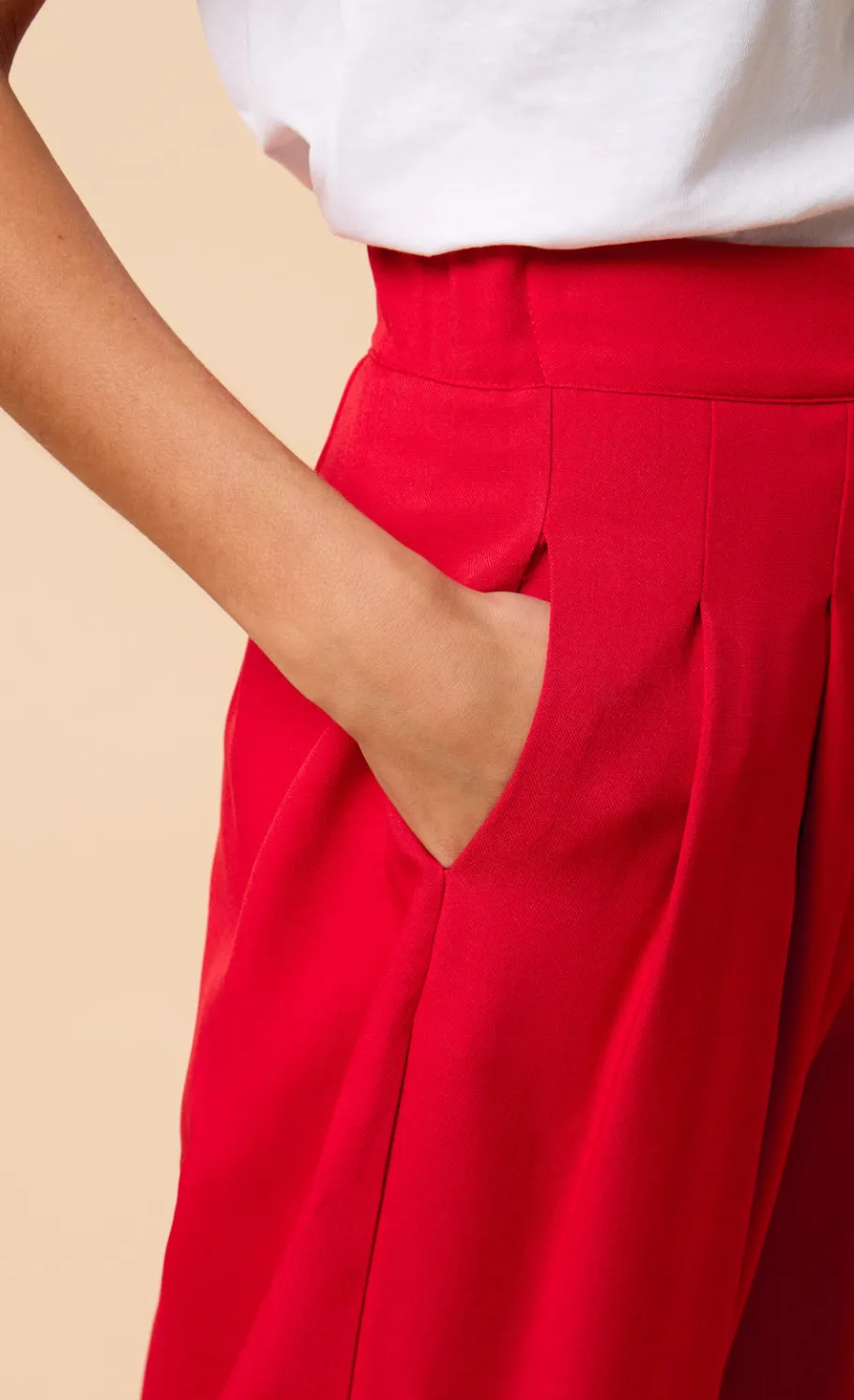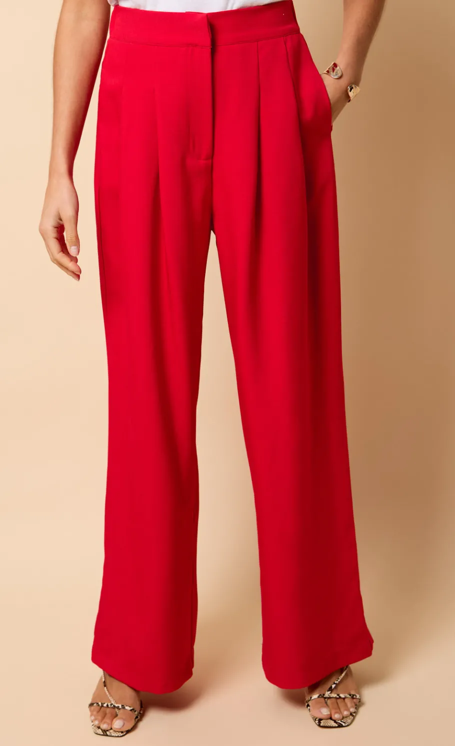 These Red Crinkle Wide Leg Trousers offer a flattering high-waist design with a relaxed wide-leg fit. Perfect for pairing with the matching co-ord, their regular length and comfortable fit make them an elegant and versatile addition to your wardrobe.