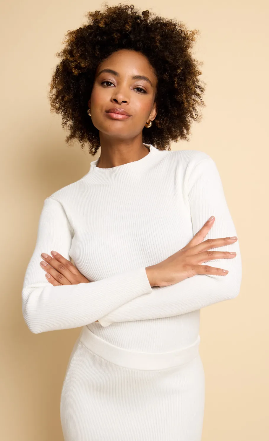 Introducing our Ecru Knit Rib Top, a timeless and versatile piece for your wardrobe. Crafted from soft, ribbed knit fabric, this top offers a comfortable, form-fitting silhouette that is perfect for layering or wearing on its own. The elegant ecru color adds a sophisticated touch, making it easy to pair with any outfit for both casual and dressier occasions.