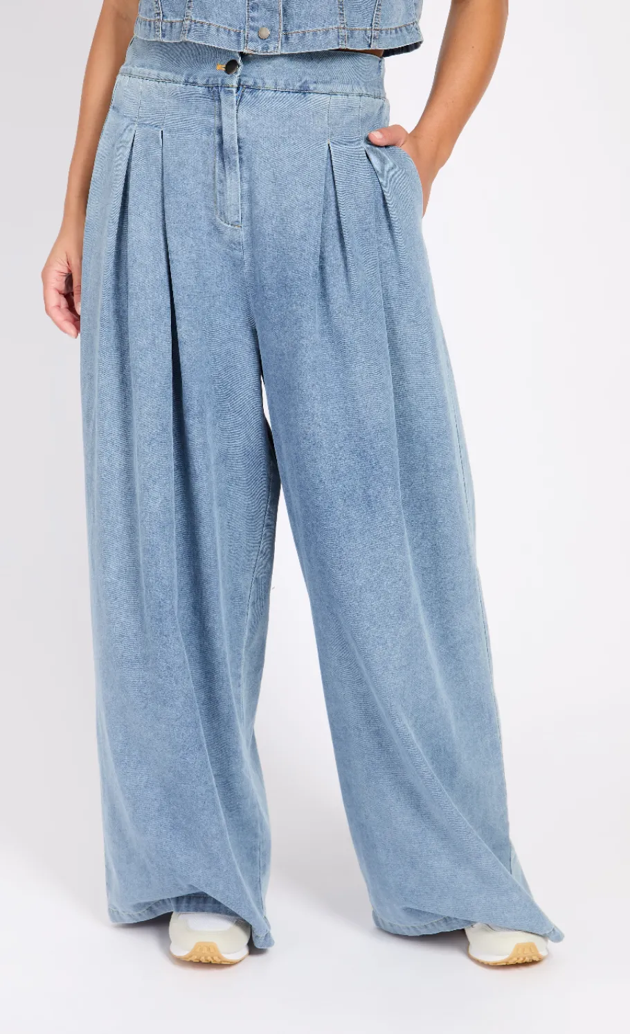 Upgrade your casual style with our Blue Wide Leg Jeans, designed to combine comfort and modern flair. Featuring a flattering high waist and a wide-leg cut, these jeans offer a chic, relaxed silhouette. Made from durable chambray denim, they pair perfectly with any top, making them a versatile addition to your wardrobe.