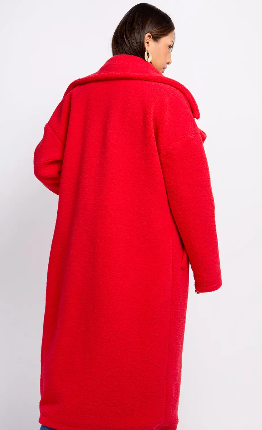 Embrace warmth and style with our Red Teddy Coat, a cozy essential for chilly days. This plush coat features a vibrant red hue, soft teddy bear texture, and a relaxed oversized fit for ultimate comfort. Perfect for layering over any outfit, it adds a pop of colour and luxury to your winter wardrobe.