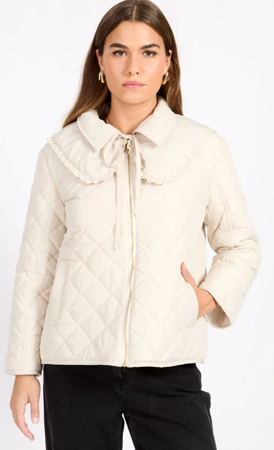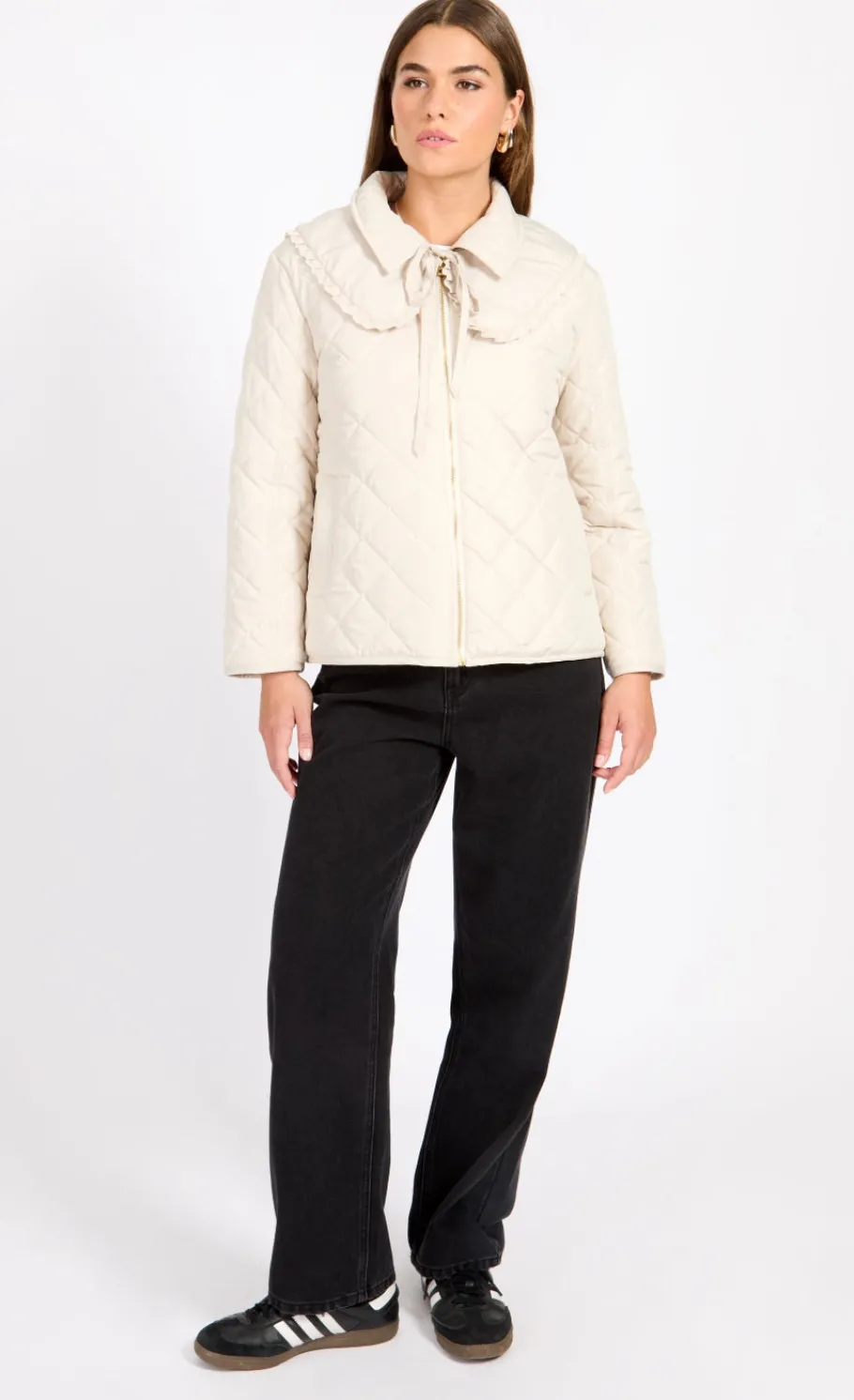Super-cute meets super-stylish in our quilted jacket, a detachable tie-neck collar makes for an ultra-versatile piece. Style over wide leg trousers or jeans for a relaxed yet on-trend statement.