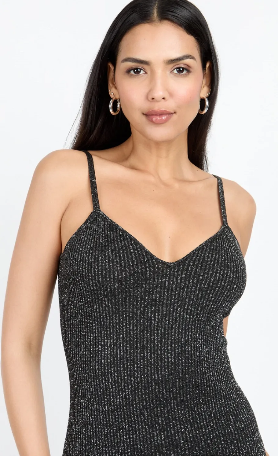 Stand out in our metallic knit ribbed midi dress. This stylish dress features a shimmering metallic knit fabric and a flattering ribbed texture. The midi length and sleek silhouette make it perfect for any occasion, from daytime events to evening outings. Elevate your wardrobe with this eye-catching, versatile piece.