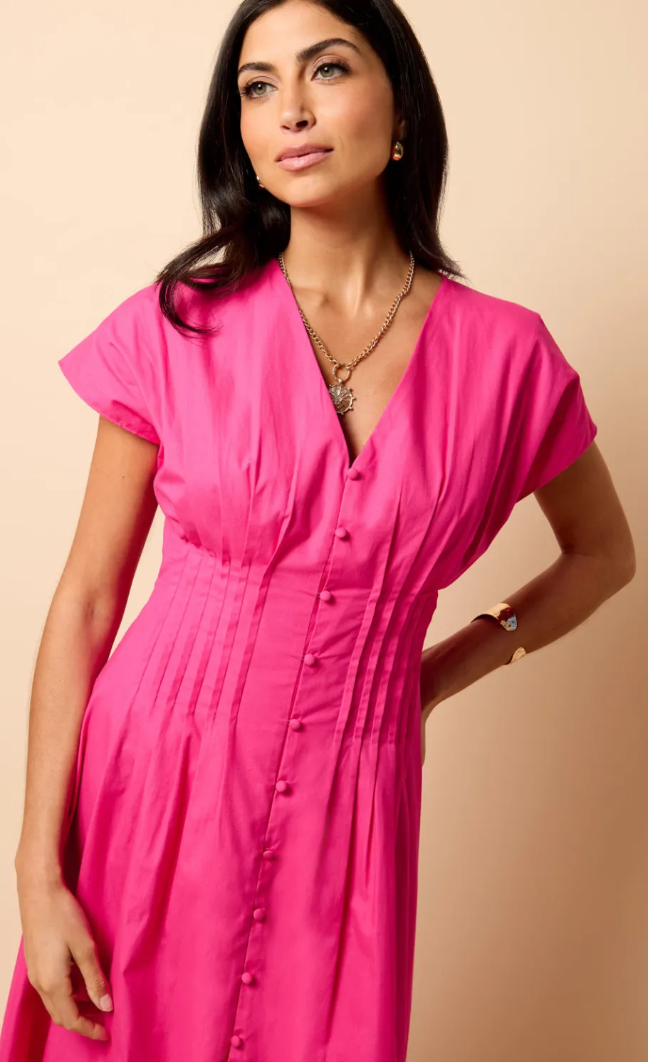 Embrace effortless charm with this Pink Cotton Midaxi Dress, featuring a breezy sleeveless design and flattering V-neckline. Its A-line silhouette and midaxi length make it a versatile choice for warm-weather days and casual outings.