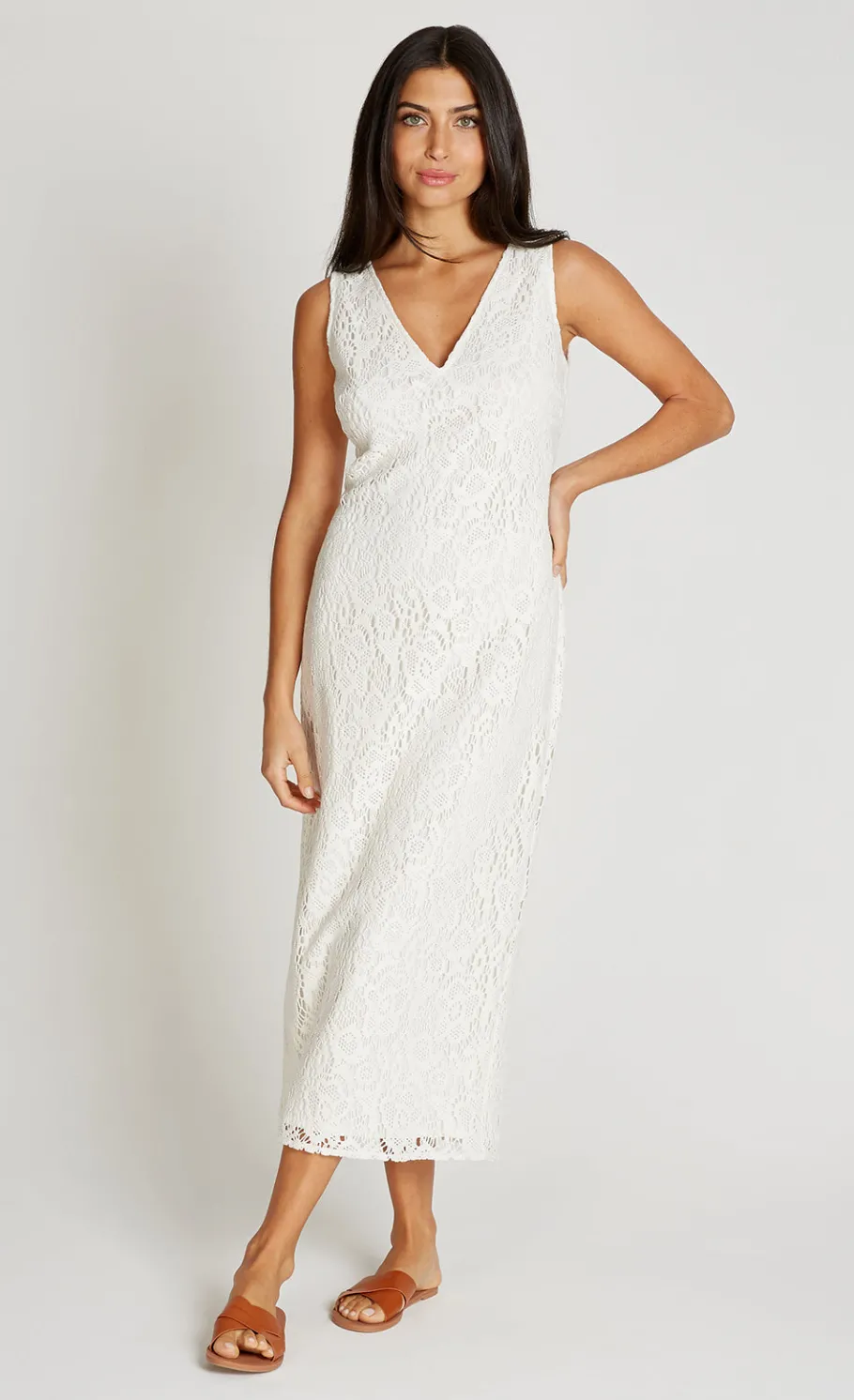 The Cream Crochet Midaxi Dress features a delicate V-neck and sleeveless design, offering a regular fit with a flattering A-line silhouette. Its midaxi length and intricate crochet detailing make it a perfect choice for a feminine, elegant look.