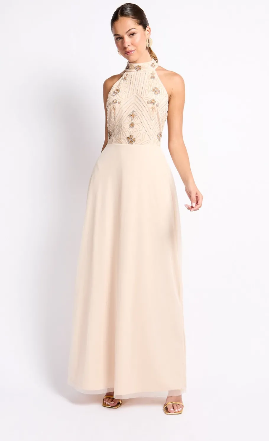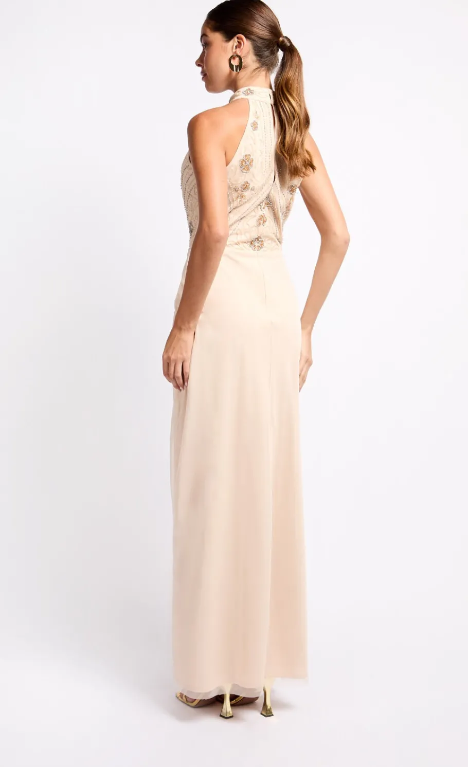 Elevate your style with this stunning cream embellished top dress featuring a flowing chiffon maxi skirt. The intricate beadwork on the bodice adds a touch of glamour, while the soft chiffon drapes elegantly, creating a timeless silhouette. Perfect for special occasions, this dress offers a blend of sophistication and grace, ensuring you stand out with effortless charm.