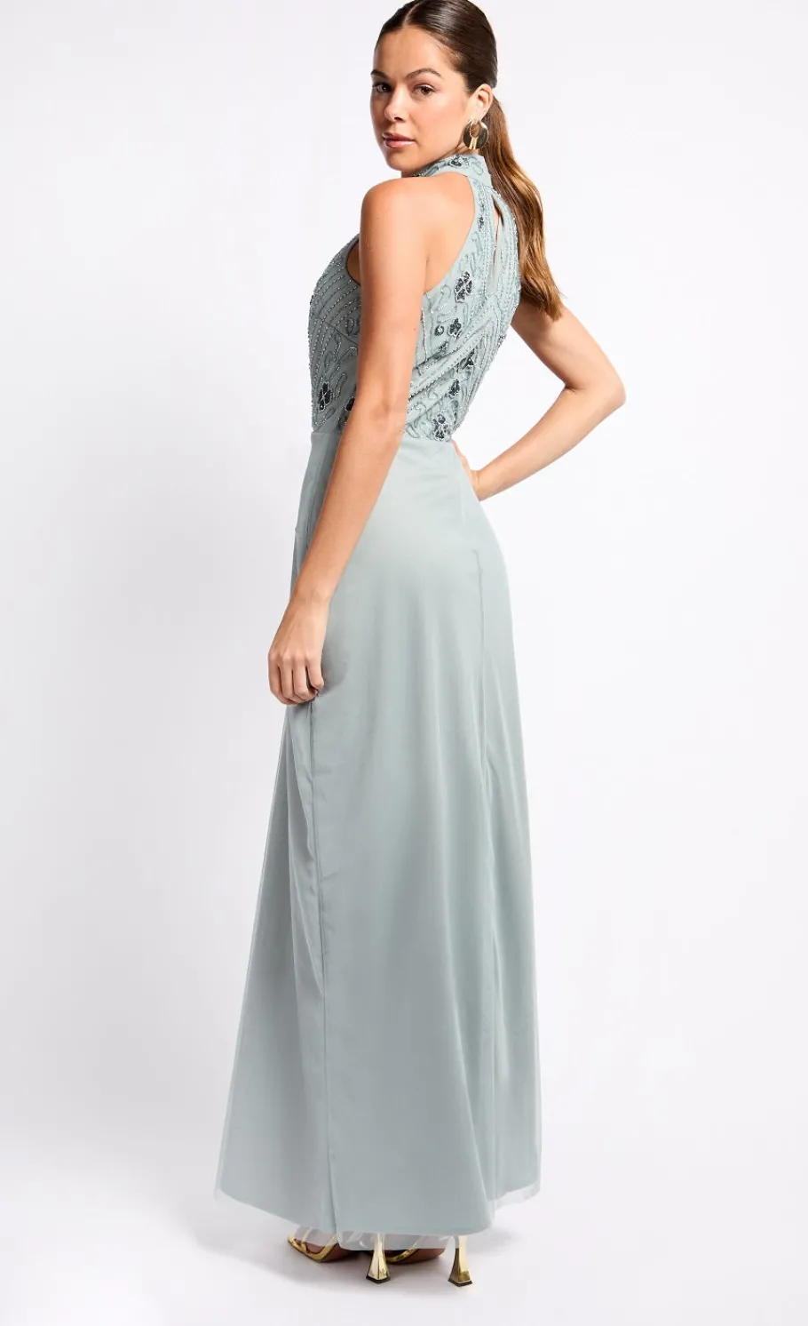 Elevate your style with this stunning grey embellished top dress featuring a flowing chiffon maxi skirt. The intricate beadwork on the bodice adds a touch of glamour, while the soft chiffon drapes elegantly, creating a timeless silhouette. Perfect for special occasions, this dress offers a blend of sophistication and grace, ensuring you stand out with effortless charm.