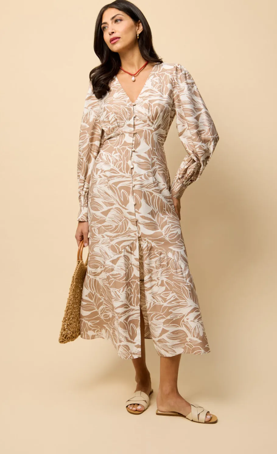 Step into effortless elegance with the Leaf Print Midaxi Dress, a perfect combination of style and comfort. This dress features a stunning leaf print in a soft shade, adding sophistication to your wardrobe. The flattering midaxi length and relaxed fit make it ideal for both casual outings and special occasions, offering a chic and versatile look.