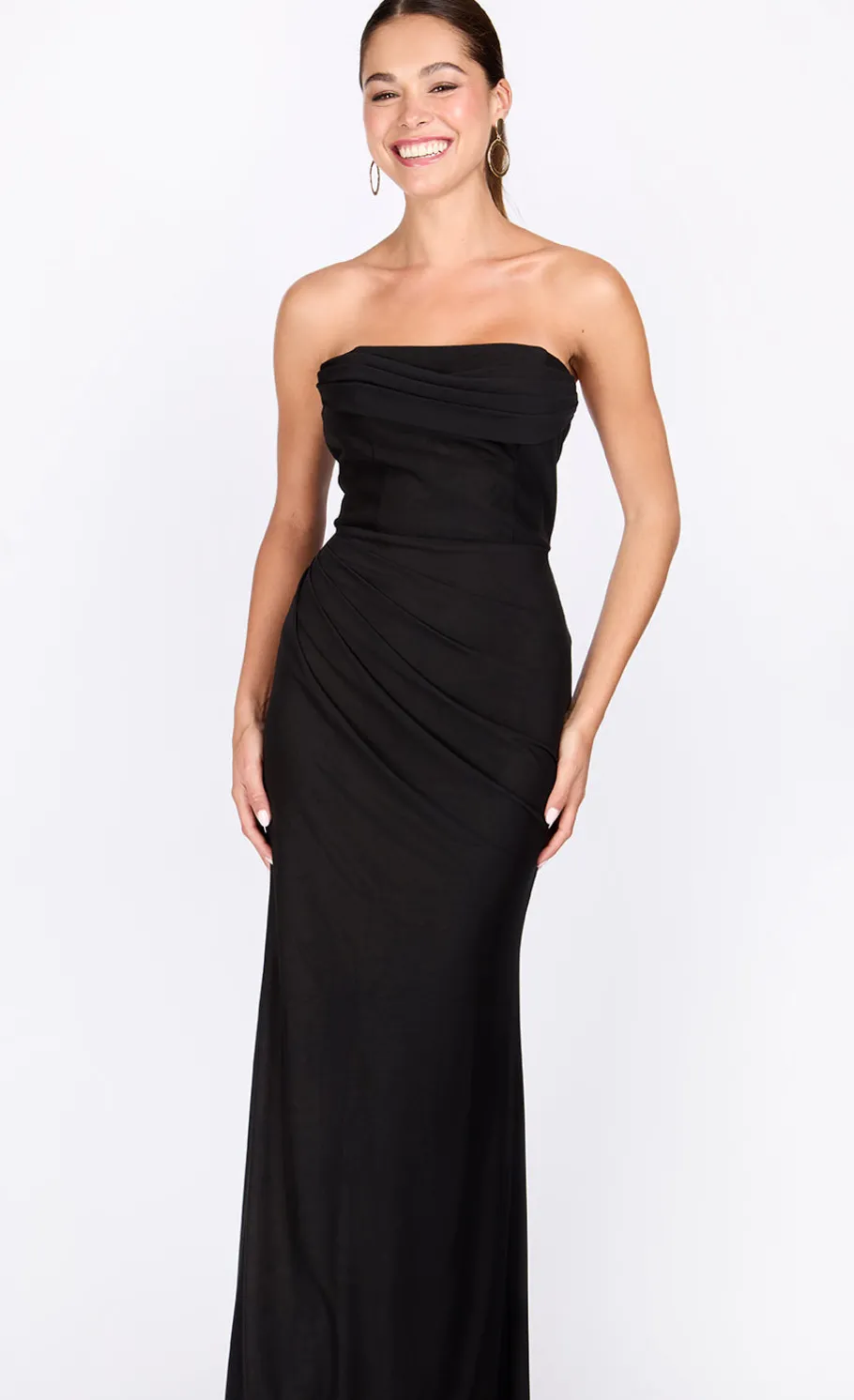 The Black Mesh Bandeau Maxi Dress exudes modern sophistication with its sleek bandeau top and sleeveless design. Crafted from stretch mesh fabric, this dress offers a flattering A-line silhouette and a dramatic maxi length for a bold, yet elegant look. Perfect for evening outings or formal occasions, it combines style and comfort effortlessly.