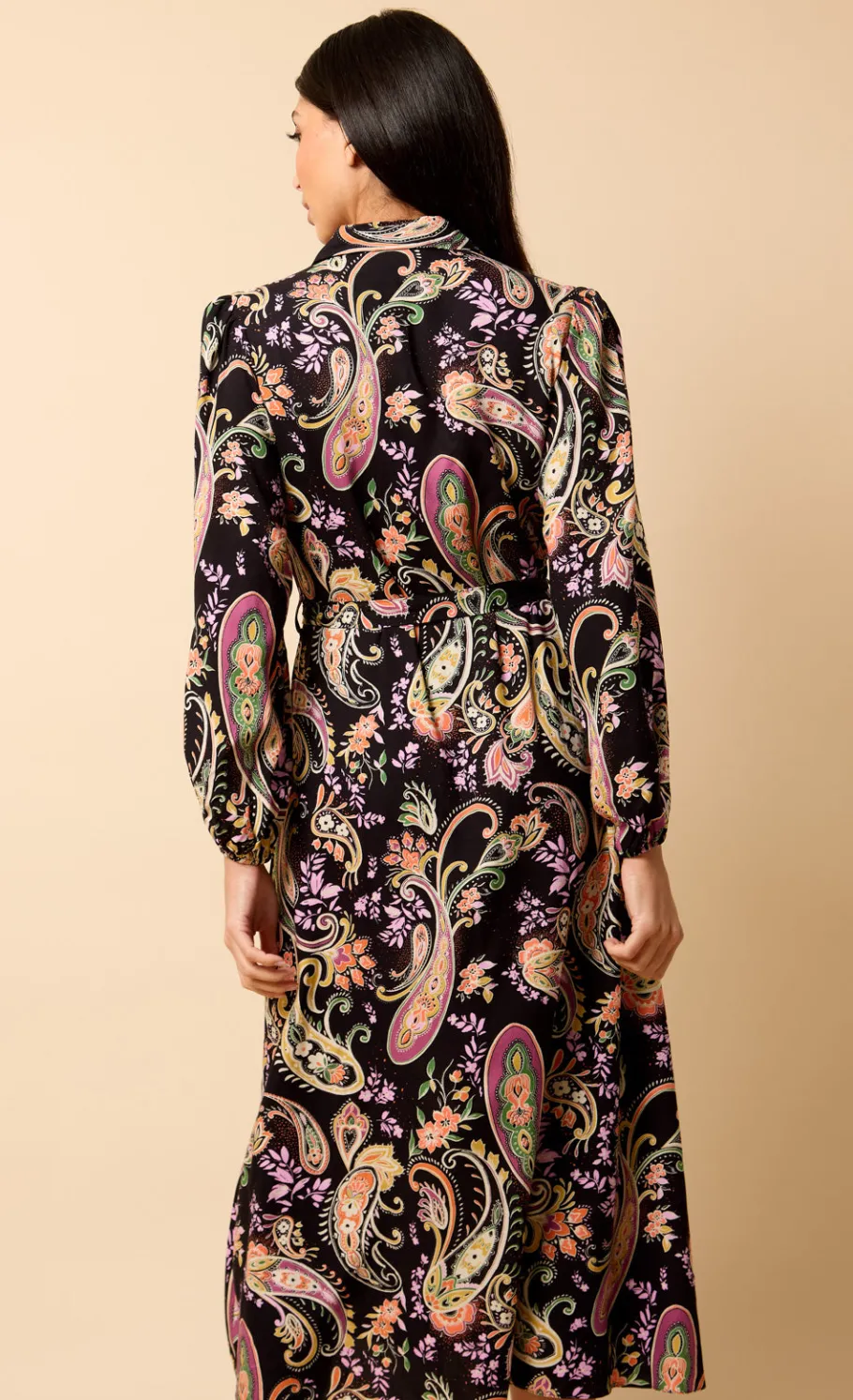 Add effortless elegance to your wardrobe with the Long Sleeve Midi Shirt Dress in a timeless paisley print. Featuring a flattering V-neckline, adjustable tie waist, and classic A-line silhouette, this midi dress offers a regular fit that’s perfect for both work and weekend wear. With long sleeves and a flowing shape, it’s a versatile piece that combines comfort, style, and sophistication.
