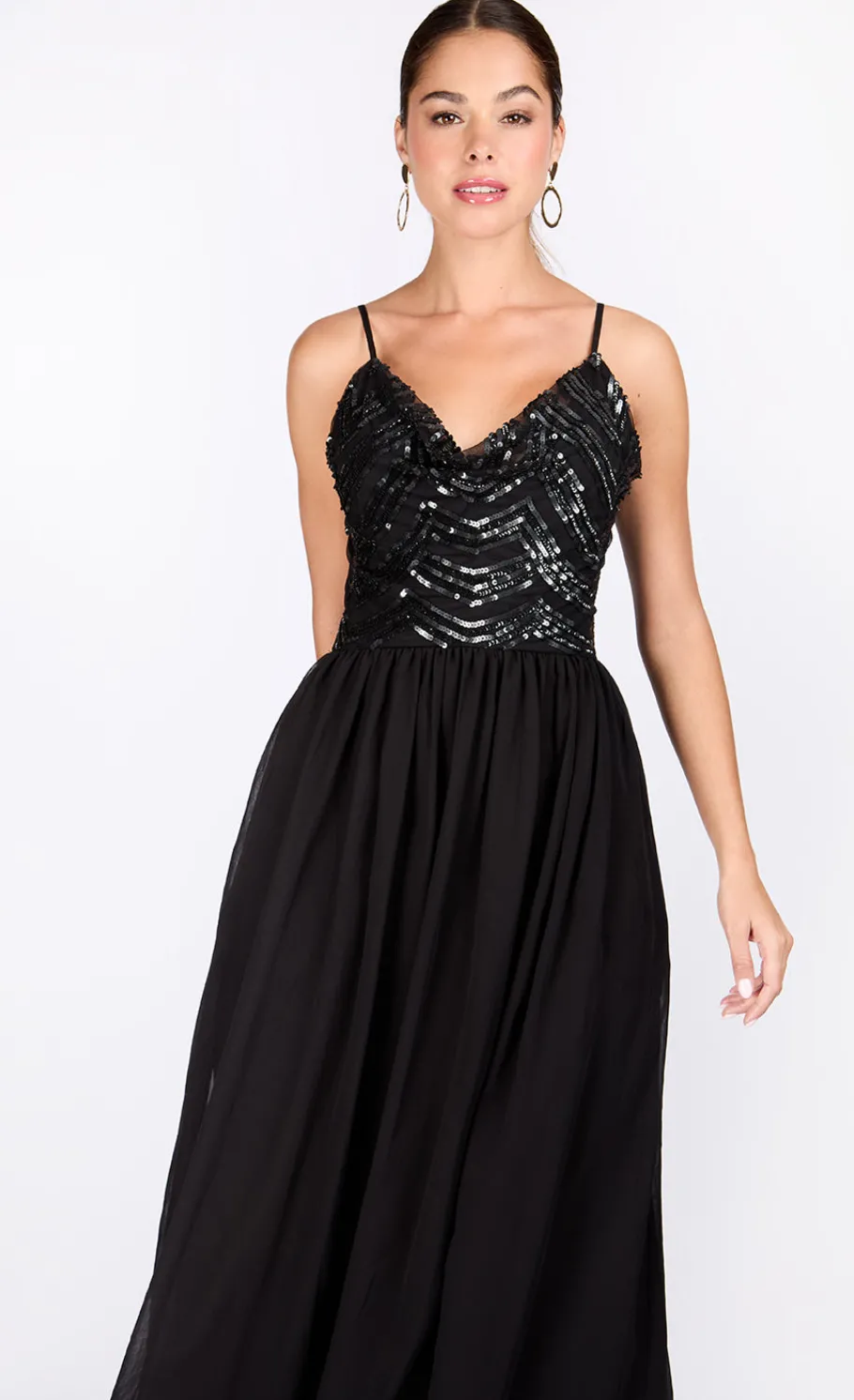 A perfect blend of elegance and sophistication. This exquisite dress features intricate embellishments that add a touch of glamour, making it ideal for any special occasion. Crafted in a timeless black hue, it promises to be a standout piece in your wardrobe.