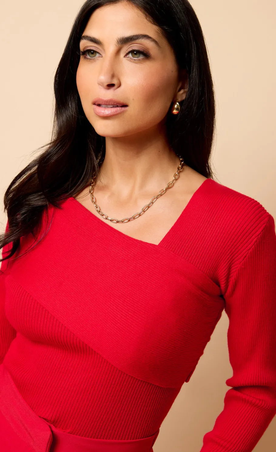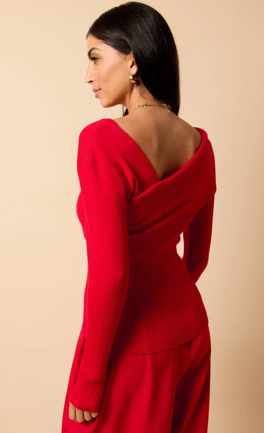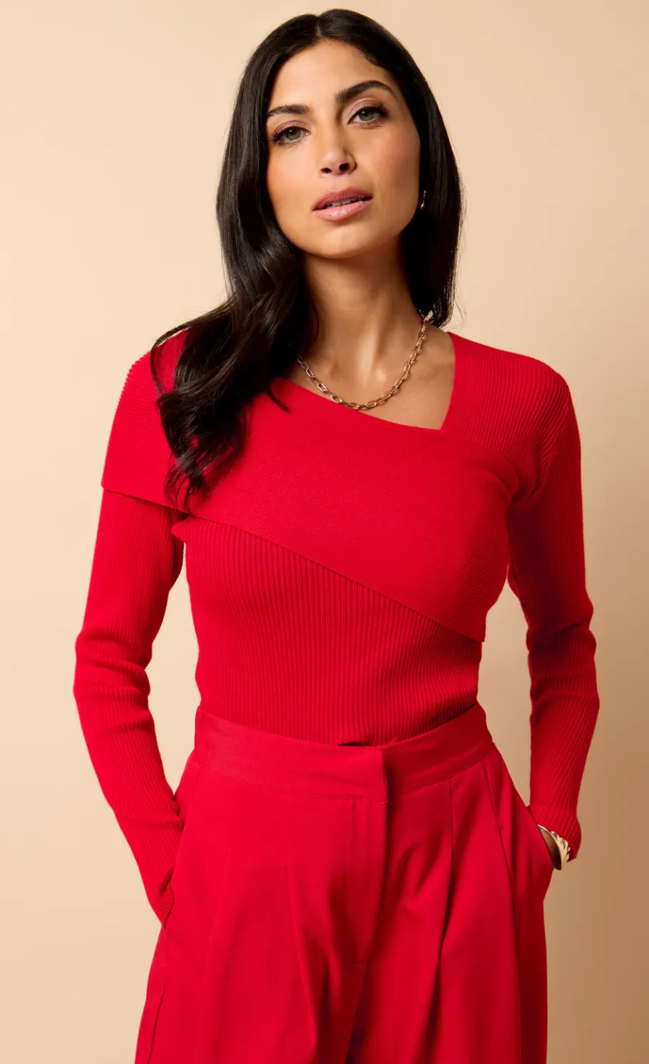 Make a statement with this Red Knit Top, featuring a bold asymmetric neckline and sleek long sleeves. Designed in a regular fit, it’s a versatile piece that adds a modern edge to your everyday style.