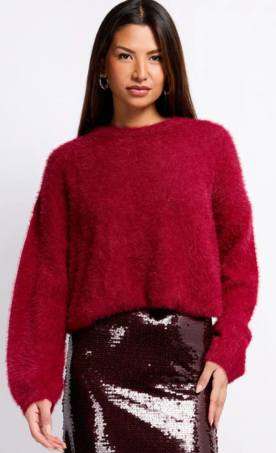 Wrap yourself in cozy luxury with our Burgundy Knit Jumper. This soft, burgundy jumper features a plush, textured knit that’s perfect for keeping warm and stylish. The relaxed fit and ribbed cuffs add a touch of casual elegance, making it a versatile piece for any wardrobe. Pair with high-waisted jeans and ankle boots for a chic, casual look or tuck into a midi skirt and add heels for a feminine, dressy outfit.