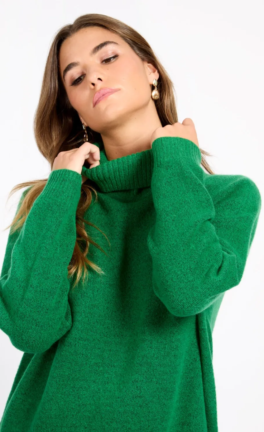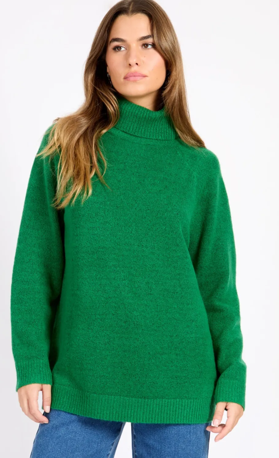 Crafted from soft and cozy fabric, this jumper offers warmth and comfort with a touch of sophistication. The timeless green hue complements any outfit, perfect for layering during cooler seasons. The roll neck adds a classic touch while keeping you snug. Pair it with jeans for a casual look or dress it up with trousers for a polished ensemble. Versatile and essential, this jumper is a must-have for effortless style and comfort throughout the year.