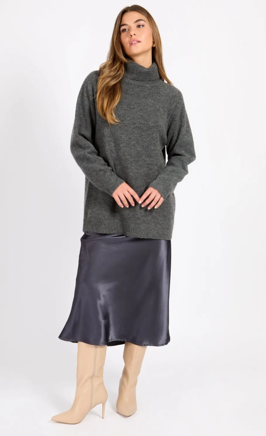 Crafted from soft and cozy fabric, this jumper offers warmth and comfort with a touch of sophistication. The timeless charcoal hue complements any outfit, perfect for layering during cooler seasons. The roll neck adds a classic touch while keeping you snug. Pair it with jeans for a casual look or dress it up with trousers for a polished ensemble. Versatile and essential, this jumper is a must-have for effortless style and comfort throughout the year.