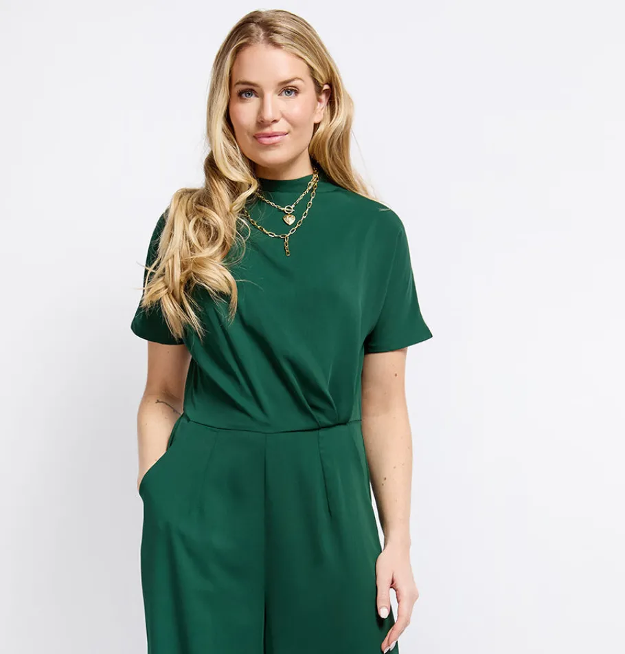Turn heads with our Emerald Green High Neck Jumpsuit. This stunning piece features a sophisticated high neck and a vibrant emerald green hue, perfect for making a statement. The sleek, tailored fit enhances your silhouette, while the elegant design ensures versatility for any occasion. Ideal for parties or special events, this jumpsuit exudes confidence and style.