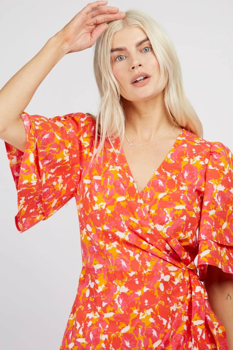 Ultra-flattering with day-to-night appeal, there’s a lot to love about a wrap dress. Dreamy double-layer angel sleeves and a ruffle trim make this one extra-special – wear it with trainers by day, heels after dark. Print placement may vary.
