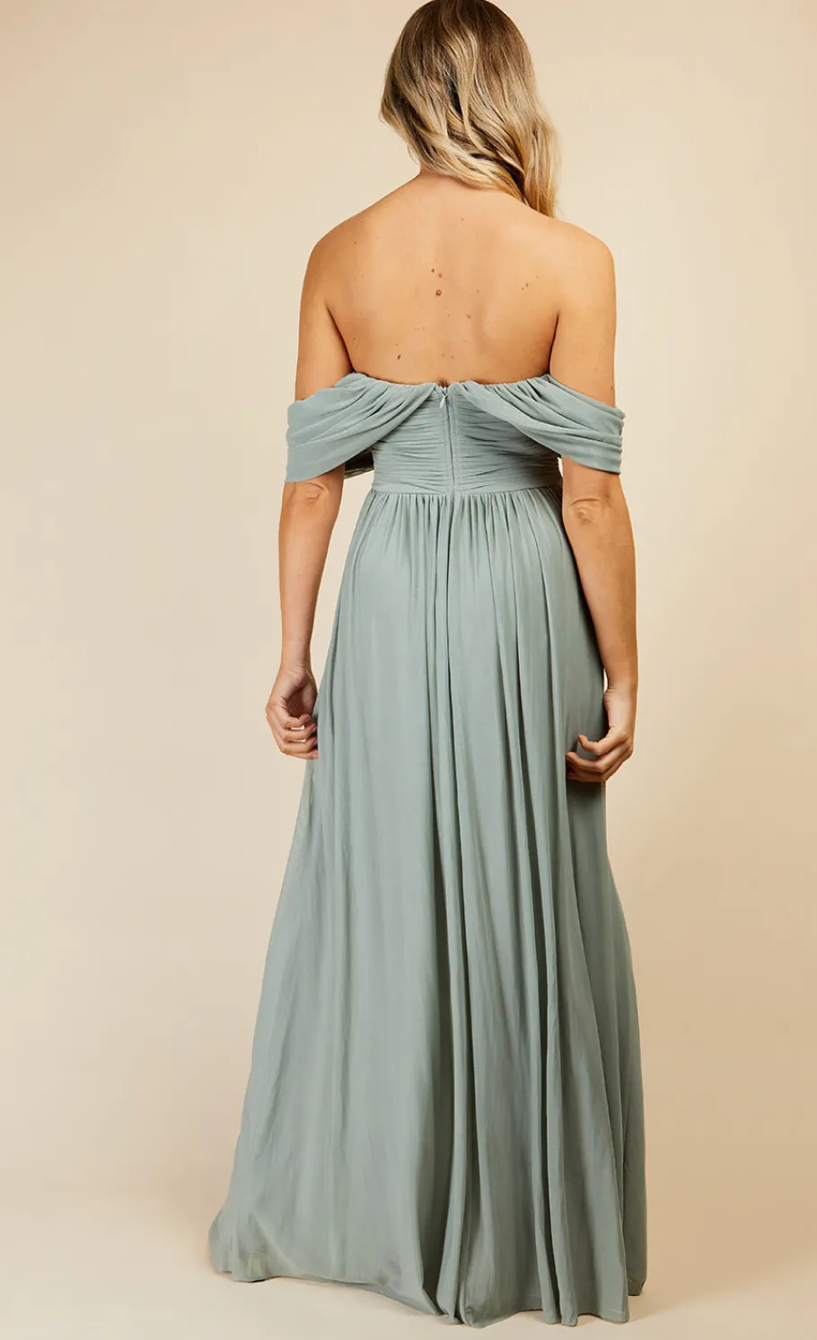 Feel like a Grecian goddess in this gorgeous ruched gown. Gathered at the bust for an oh-so-flattering fit and topped with stunning draped sleeves, it’s crafted from stretch mesh fabric for a special occasion look that’s as comfy as it is chic. Just add statement jewels.