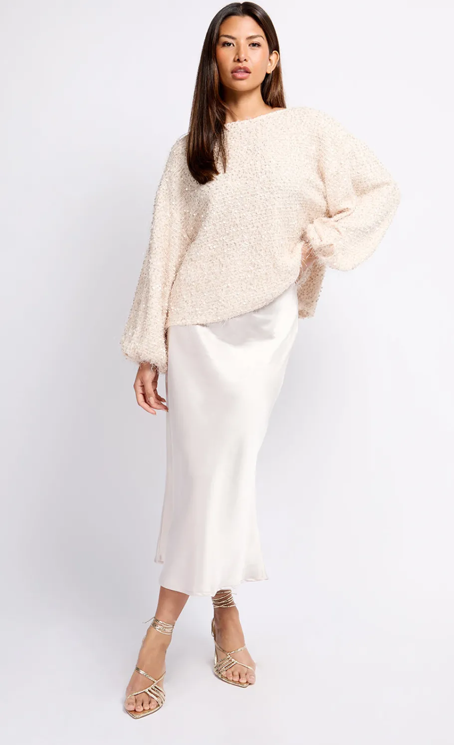 Elevate your knitwear collection with our Cream Sequin Eyelash Knit Jumper. This exquisite piece combines cozy comfort with glamorous flair, featuring delicate sequin detailing that adds sparkle to any outfit. The soft eyelash knit texture enhances the luxurious feel, while the classic cream hue ensures effortless versatility. Perfect for both casual and dressy occasions, this jumper promises to be your go-to for chic sophistication and warmth.