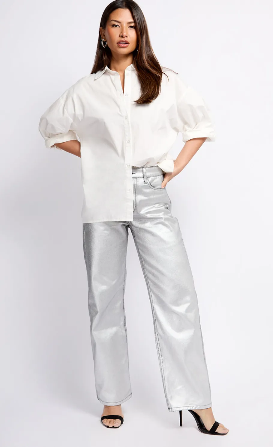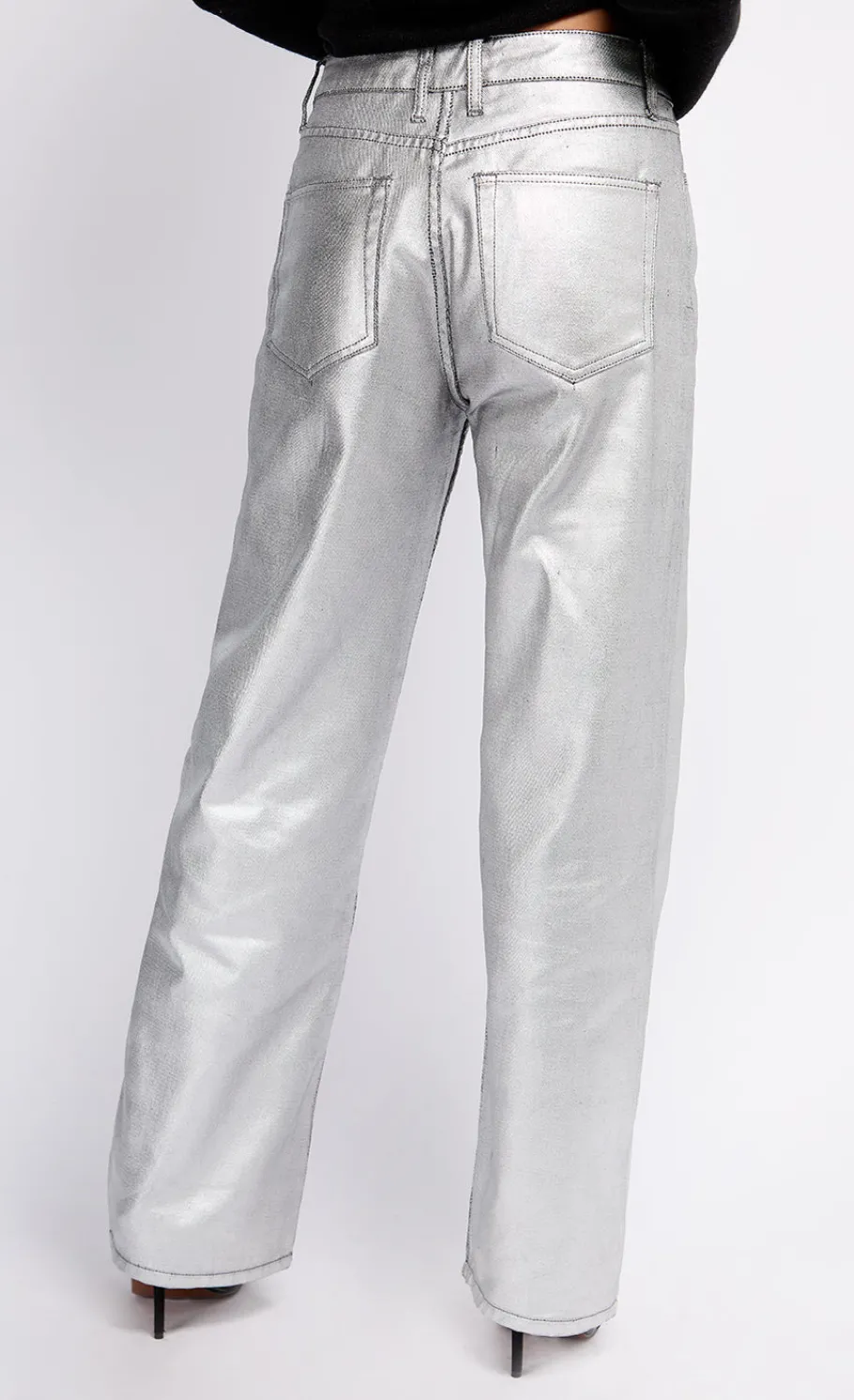 Elevate your wardrobe with our Silver Coated Trousers, a statement piece that exudes modern sophistication. These trousers feature a sleek silver coating that catches the light, adding a touch of glamour to any ensemble. The slim fit and ankle-grazing length ensure a flattering silhouette, perfect for both day and evening wear. Pair with a crisp white blouse and heels for a polished office look or dress down with a chunky knit sweater and ankle boots for casual chic.